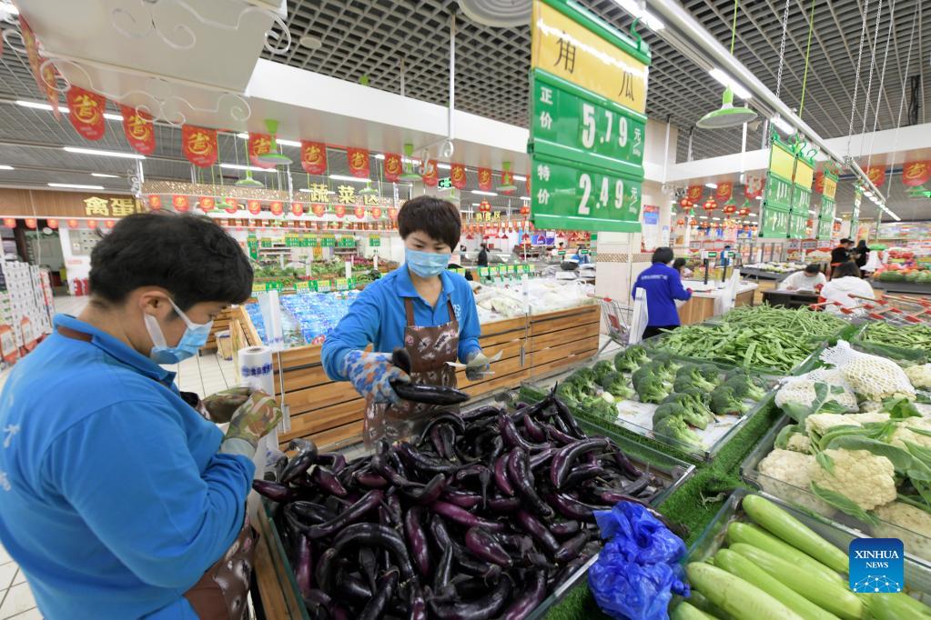 E-mail Xinhua, September 29, 2021Supermarket employees prepare vegetables ordered online by residents under close-off management in Bayan County of Harbin, northeast China's Heilongjiang Province, Sept. 27, 2021. Local authorities have prioritized delivery services to ensure the supply of necessities for residents under close-off management. The pricing of commodities remains stable in the county. [Photo by Wang Jianwei/Xinhua]