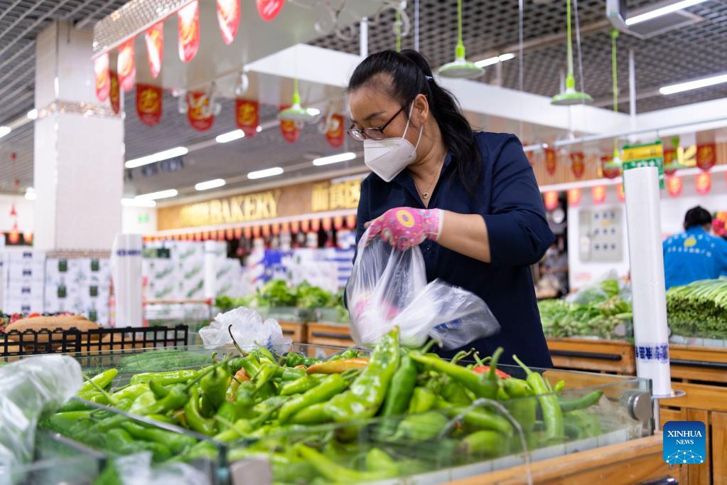 E-mail Xinhua, September 29, 2021A supermarket employee selects vegetables ordered online by residents under close-off management in Bayan County of Harbin, northeast China's Heilongjiang Province, Sept. 27, 2021. Local authorities have prioritized delivery services to ensure the supply of necessities for residents under close-off management. The pricing of commodities remains stable in the county. [Photo by Xie Jianfei/Xinhua]