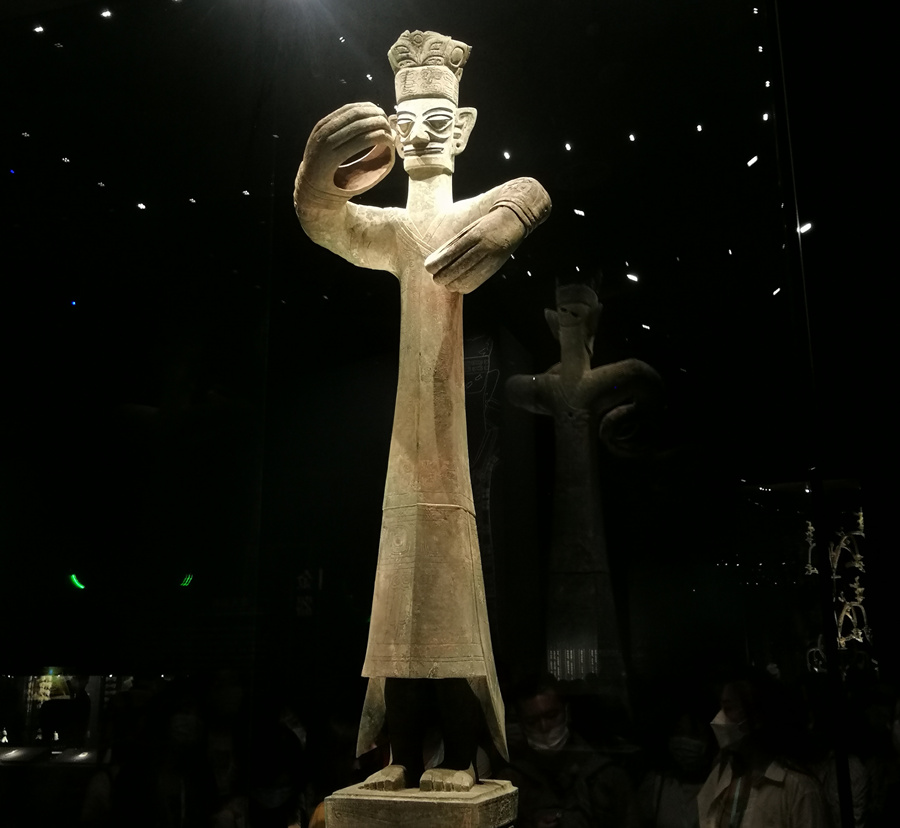 E-mail chinadaily.com.cn, September 29, 2021A grand statue of a human figure unearthed from the Sanxingdui site is on display at the Sanxingdui Museum, in Guanghan city, Southwest China's Sichuan province, on Sept 26, 2021. [Photo by Bi Nan/chinadaily.com.cn]