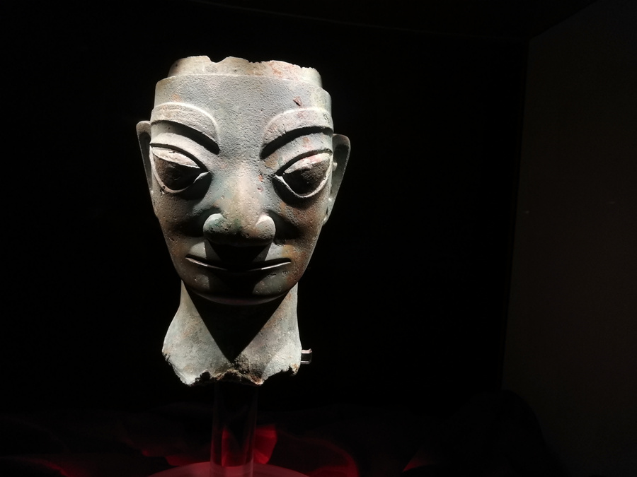 E-mail chinadaily.com.cn, September 29, 2021A bronze head portrait unearthed from the Sanxingdui site is on display at the Sanxingdui Museum, in Guanghan city, Southwest China's Sichuan province, on Sept 26, 2021. [Photo by Bi Nan/chinadaily.com.cn]