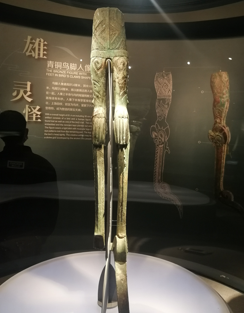 E-mail chinadaily.com.cn, September 29, 2021A bronze figure with feet in bird's claws shape unearthed from the Sanxingdui site is on display at the Sanxingdui Museum, in Guanghan city, Southwest China's Sichuan province, on Sept 26, 2021. [Photo by Bi Nan/chinadaily.com.cn]