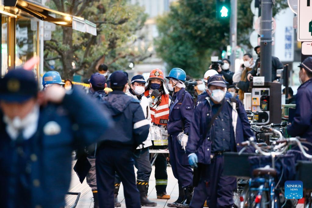 Rescuers work at a fire site in Osaka, Japan, Dec. 17, 2021. At least 24 people have been confirmed dead from a fire that broke out in a medical clinic in Japan's Osaka prefecture on Friday, the police said, adding that they are investigating the incident as a suspected arson. The fire broke out within a medical clinic, which provides psychosomatic and psychiatric treatments, on the fourth floor of a building in Osaka's Kitashinchi district. (Xinhua/Zhang Xiaoyu)