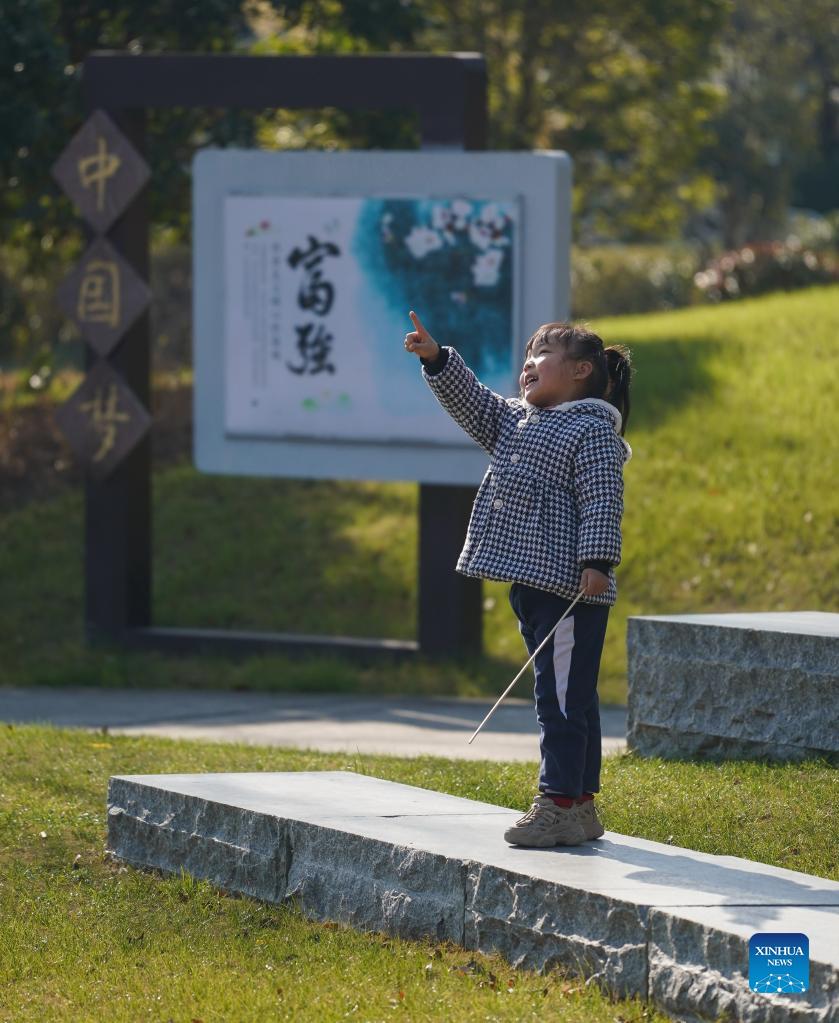A girl plays at Xingfu Park in Chongchuan District of Nantong City, east China's Jiangsu Province, Dec. 18, 2021. [Photo/Xinhua]