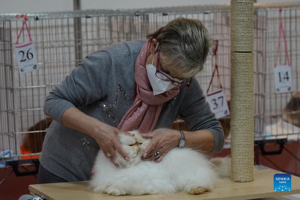 E-mail Xinhua, December 20, 2021A judge looks at a cat during the PetExpo 2021 in Riga, Latvia, on Dec. 19, 2021. PetExpo 2021, an international pet industry fair, was held in Riga from Dec. 18 to 19. (Photo by Janis Laizans/Xinhua)