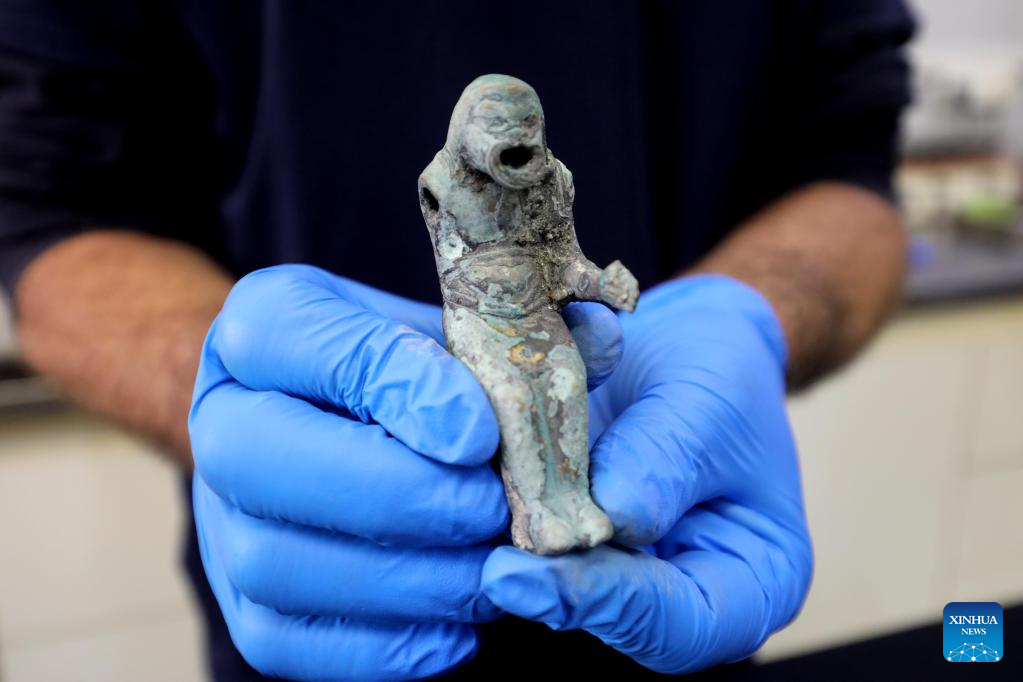 E-mail Xinhua, December 23, 2021An figurine of a Roman pantomimus found from an ancient shipwreck in the Mediterranean Sea, is displayed at the Israel Antiquities Authority lab in Jerusalem on Dec. 22, 2021. Israeli marine archaeologists have found some rare treasure from two ancient shipwrecks in the Mediterranean Sea, the Israel Antiquities Authority (IAA) said on Wednesday. [Photo by Gil Cohen Magen/Xinhua]