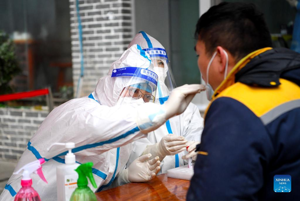E-mail Xinhua, January 11, 2022A medical worker takes a swab sample from a citizen for nucleic acid test at a COVID-19 testing site in Zhengzhou, central China's Henan Province, Jan. 10, 2022. Henan on Sunday reported 60 new locally transmitted COVID-19 cases, the National Health Commission said in its daily report on Monday. [Photo by Hao Yuan/Xinhua]