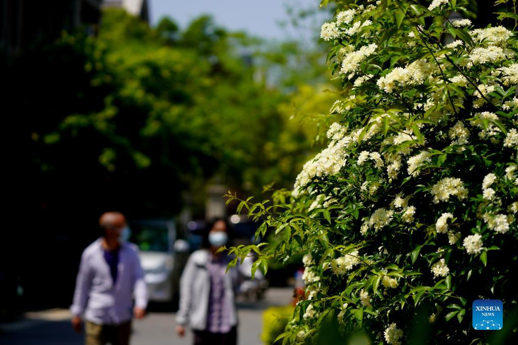 E-mail Xinhua, April 13, 2022Residents stroll at a community in Songjiang District of east China's Shanghai, April 12, 2022. Shanghai has divided the whole city into areas belonging to three categories as part of targeted efforts to overcome a local COVID-19 resurgence. It has designated 7,624 closed-off management areas, 2,460 restrictive control areas and 7,565 prevention areas, according to a press conference held on Monday. [Photo by Zhang Jiansong/Xinhua]