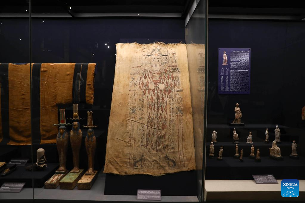 E-mail Xinhua, April 20, 2022Photo taken on April 19, 2022 shows textile-related exhibits of ancient Egypt at the newly-opened textile hall at the National Museum of Egyptian Civilization (NMEC) in Cairo, Egypt. The new 1,000-square-meter hall houses around 650 pieces, most of which are fabrics and garments, from the Pharaonic, Roman, Coptic, and Islamic eras. (Xinhua/Ahmed Gomaa)
