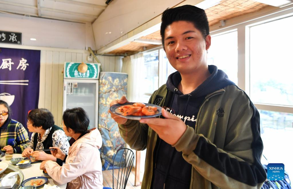 Chen Wayne shows a dish he made at his family restaurant in Xiamen, southeast China's Fujian Province, May 2, 2022. (Xinhua/Wei Peiquan)