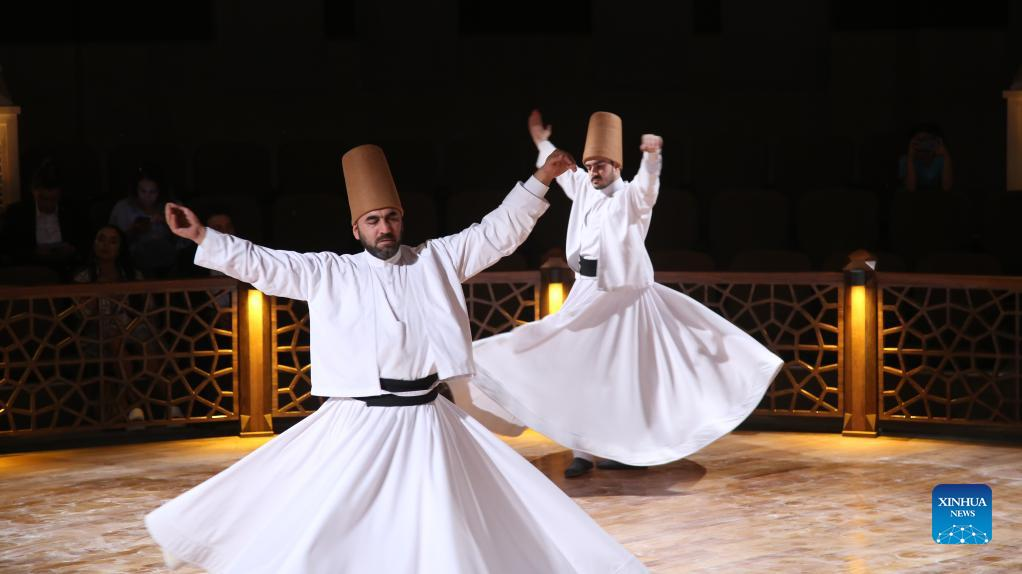 People perform the Sufi whirling dance in Konya, Türkiye, on Aug. 10, 2022. (Xinhua/Li Zhenbei)