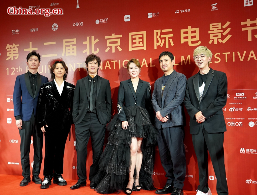 The crew from the film "Moon Man" pose at a photocall on the red carpet of the 12th BJIFF on Aug. 12, 2022. [Photo by Wang Yiming/China.org.cn]