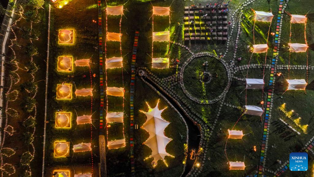 E-mail Xinhua, October 7, 2022Aerial photo taken on Oct. 5, 2022 shows the view of a camping area in Zunhua City, north China's Hebei Province. Various nightlife activities enrich people's leisure time during the National Day holiday. (Photo by Liu Mancang/Xinhua)