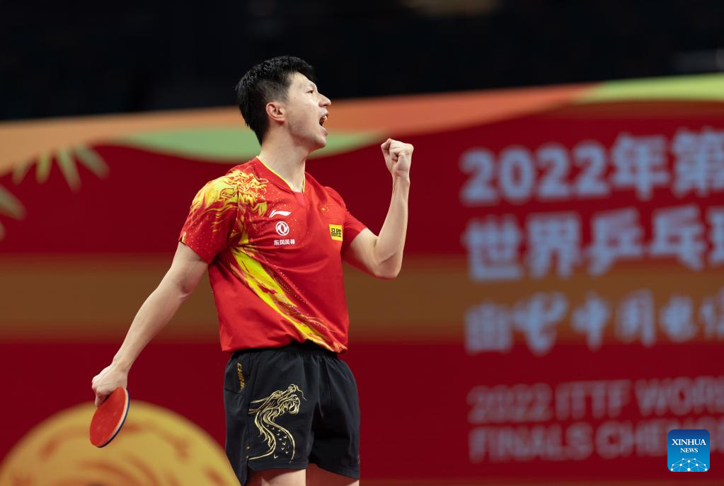 E-mail Xinhua, October 8, 2022Ma Long of China celebrates scoring while competing with Truls Moregard of Sweden during the men's teams quarterfinal match between China and Sweden at the 2022 ITTF World Team Table Tennis Championships Finals in Chengdu, southwest China's Sichuan Province, Oct. 7, 2022. [Photo by Jiang Hongjing/Xinhua]