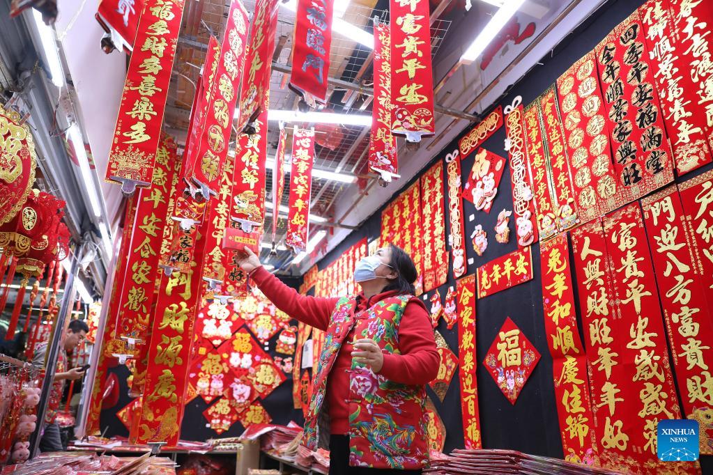 E-mail Xinhua, January 12, 2023A vendor arranges couplets at a market in Shenyang, northeast China's Liaoning Province, Jan. 11, 2023. Markets across the country are full of vitality as the Spring Festival draws near. (Xinhua/Yao Jianfeng)