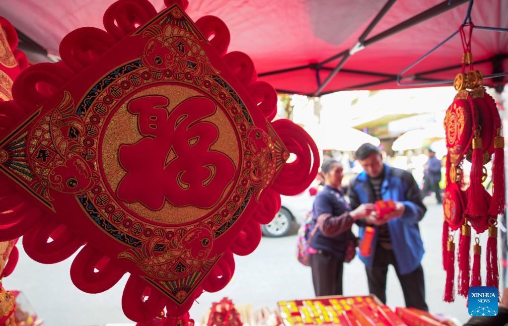 E-mail Xinhua, January 12, 2023People buy decorations for the Spring Festival at a market in Danzhai County, Qiandongnan Miao and Dong Autonomous Prefecture, southwest China's Guizhou Province, Jan. 10, 2023. Markets across the country are full of vitality as the Spring Festival draws near. (Photo by Huang Xiaohai/Xinhua)