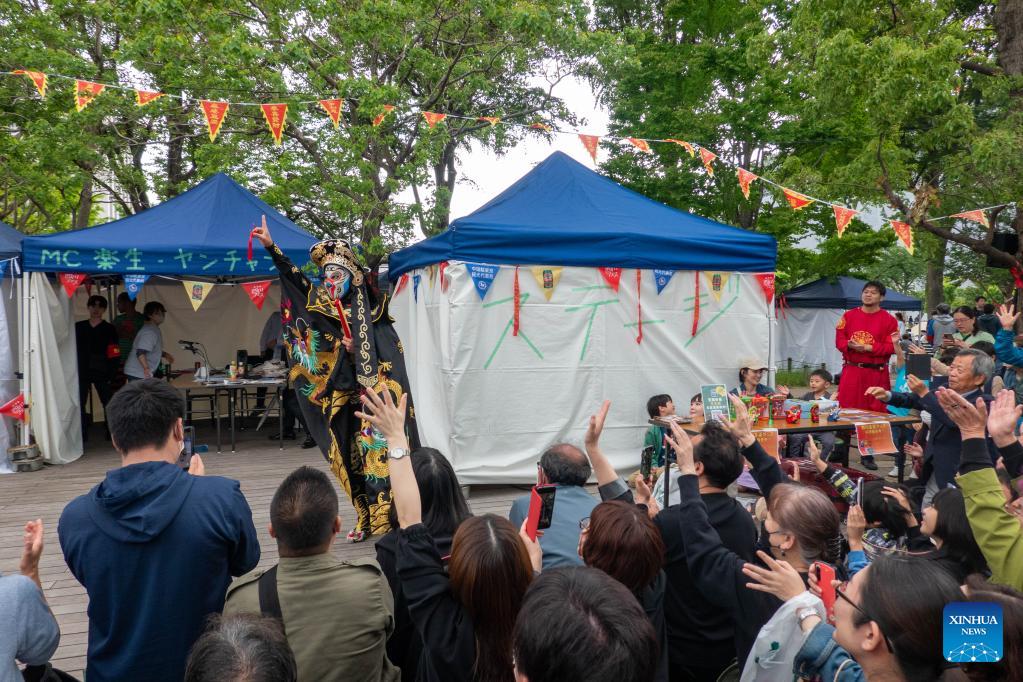 E-mail Xinhua, May 14, 2023People watch mask shifting tricks of Sichuan Opera during a Sichuan food festival held at Nakano Central Park, Tokyo, Japan, on May 14, 2023. The Sichuan food festival was held here from May 13 to May 14. (Xinhua/Zhang Xiaoyu)