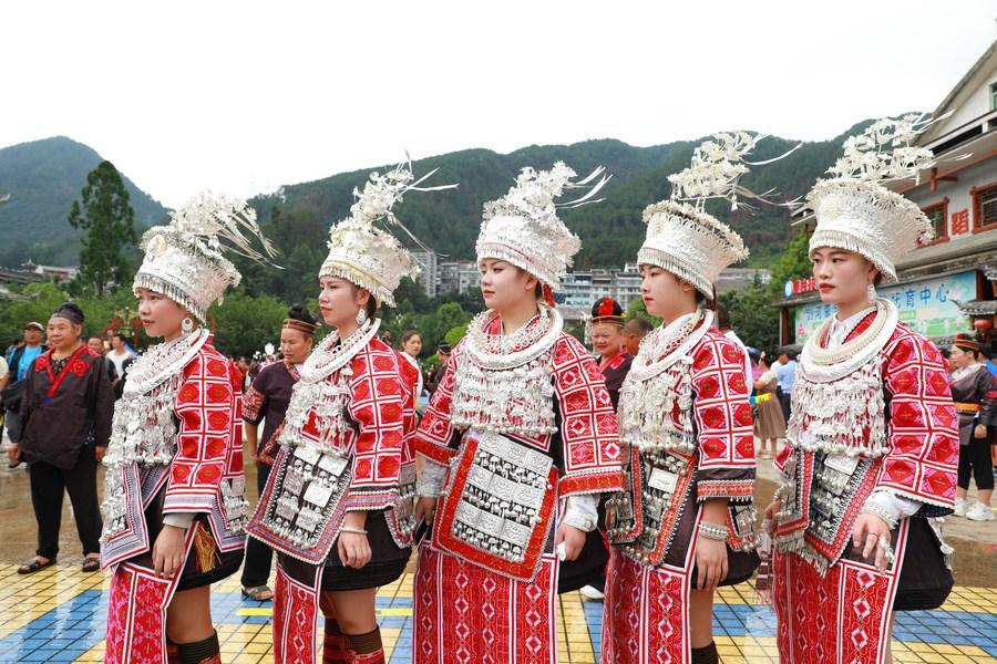 E-mail Xinhua, July 24, 2023People of Miao ethnic group take part in the celebration of "Liuyueliu", an ethnic festival, in Jianhe County of Qiandongnan Miao and Dong Autonomous Prefecture, southwest China's Guizhou Province, July 23, 2023. (Xinhua/Yang Wenbin)