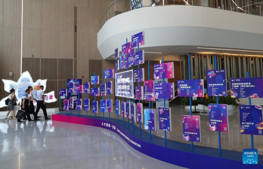 E-mail Xinhua, September 12, 2023Visitors walk past an installation at the entrance to the InnoMatch Global Tech-Matching Fair of the 2023 Pujiang Innovation Forum in east China's Shanghai Sept. 10, 2023. A global technology matching platform associated to the 2023 Pujiang Innovation Forum in Shanghai has offered 25 billion yuan (about 3.5 billion U.S. dollars) worth of innovation matching projects. (Xinhua/Fang Zhe)