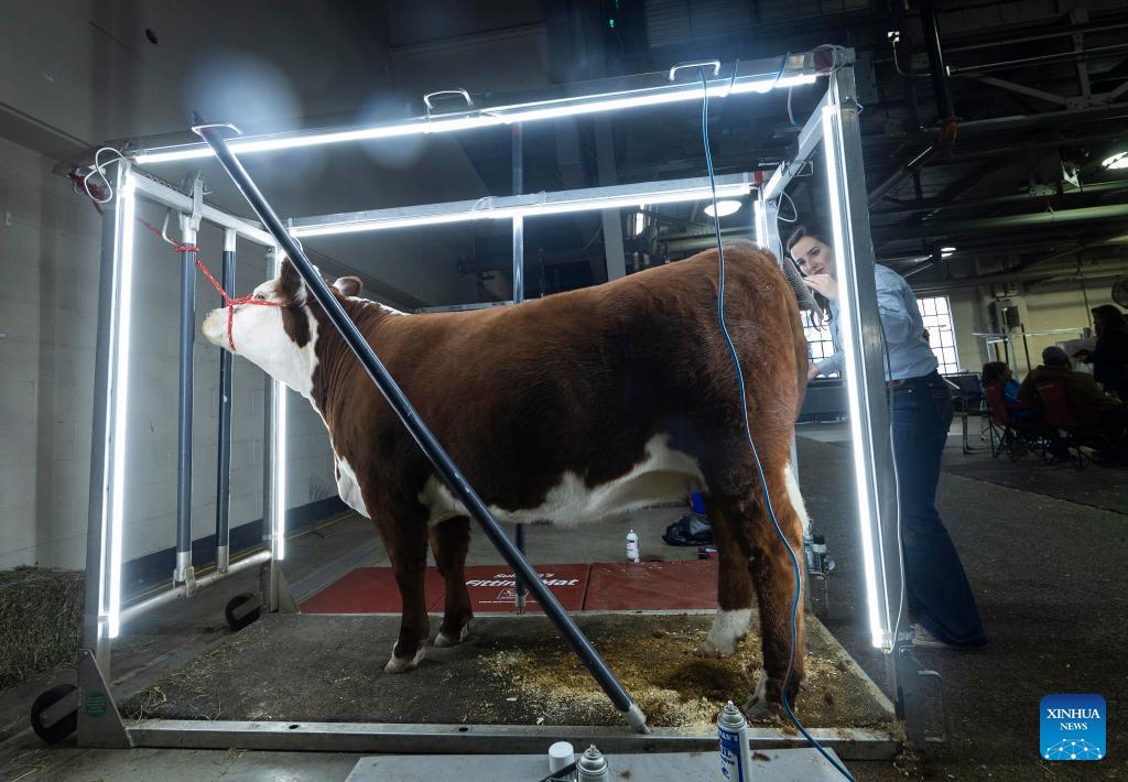 E-mail Xinhua, November 4, 2023A woman clips a cow during the 2023 Royal Agricultural Winter Fair in Toronto, Canada, on Nov. 3, 2023. Showcasing the best in agriculture, local food and more, the ten-day annual event kicked off here on Friday. (Photo by Zou Zheng/Xinhua)