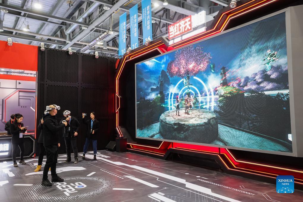 E-mail Xinhua, November 24, 2023Visitors experience VR games at the Digital Contents Pavilion during the second Global Digital Trade Expo in Hangzhou, east China's Zhejiang Province, Nov. 23, 2023. The second Global Digital Trade Expo kicked off in Hangzhou on Thursday morning, with an eye on global digital trade cooperation. The expo, themed "Digital Trade, Global Access," has attracted 68 international organizations and business associations, as well as over 800 enterprises. (Xinhua/Xu Yu)
