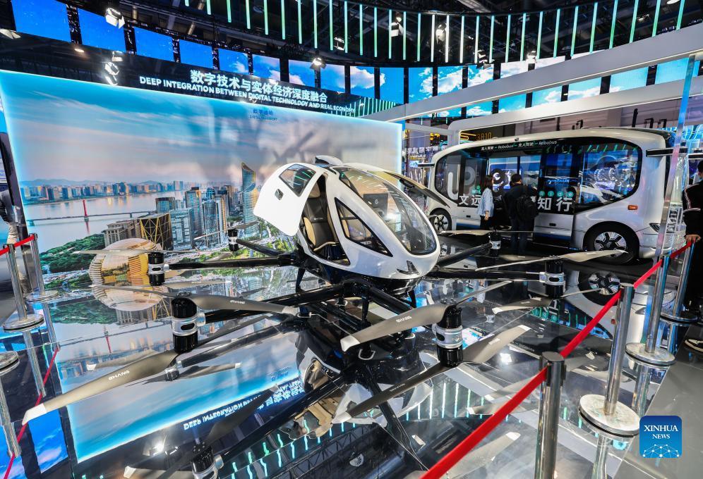 E-mail Xinhua, November 24, 2023This photo taken on Nov. 23, 2023 shows an aircraft and driverless car exhibited at the Integrated Show Pavilion during the second Global Digital Trade Expo in Hangzhou, east China's Zhejiang Province. The second Global Digital Trade Expo kicked off in Hangzhou on Thursday morning, with an eye on global digital trade cooperation. The expo, themed "Digital Trade, Global Access," has attracted 68 international organizations and business associations, as well as over 800 enterprises. (Xinhua/Xu Yu)