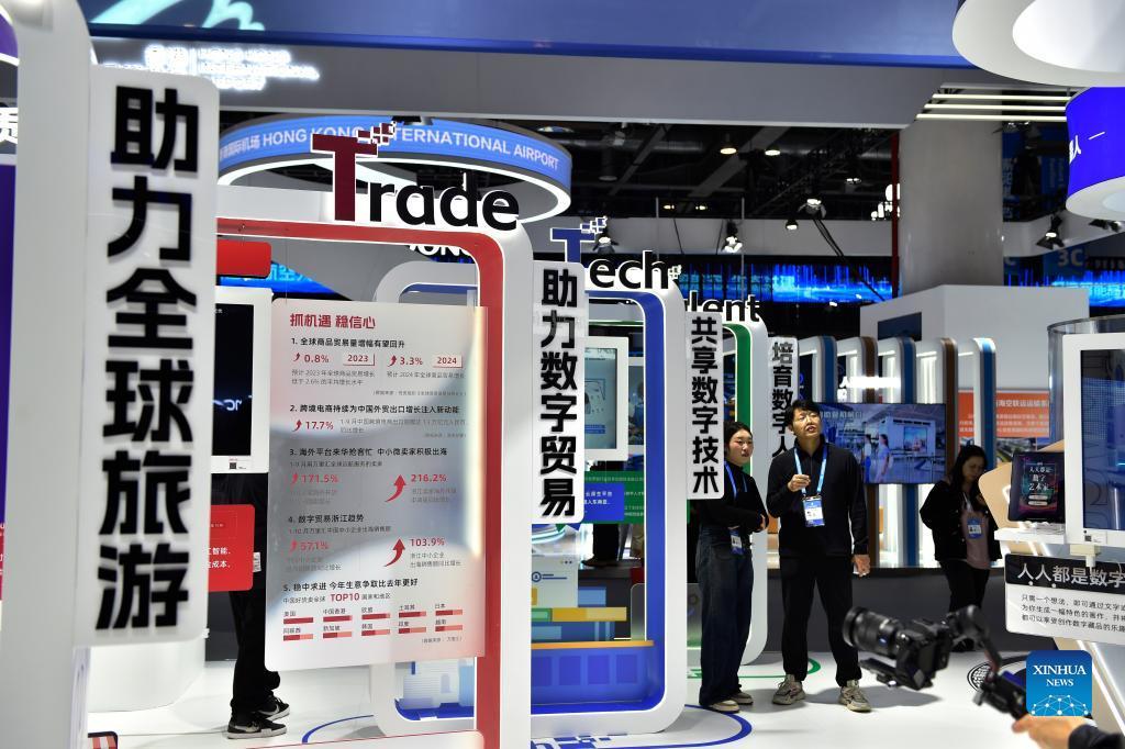 E-mail Xinhua, November 24, 2023Visitors are seen at the Future Development Pavilion during the second Global Digital Trade Expo in Hangzhou, east China's Zhejiang Province, Nov. 23, 2023. The second Global Digital Trade Expo kicked off in Hangzhou on Thursday morning, with an eye on global digital trade cooperation. The expo, themed "Digital Trade, Global Access," has attracted 68 international organizations and business associations, as well as over 800 enterprises. (Xinhua/Liu Lingyi)