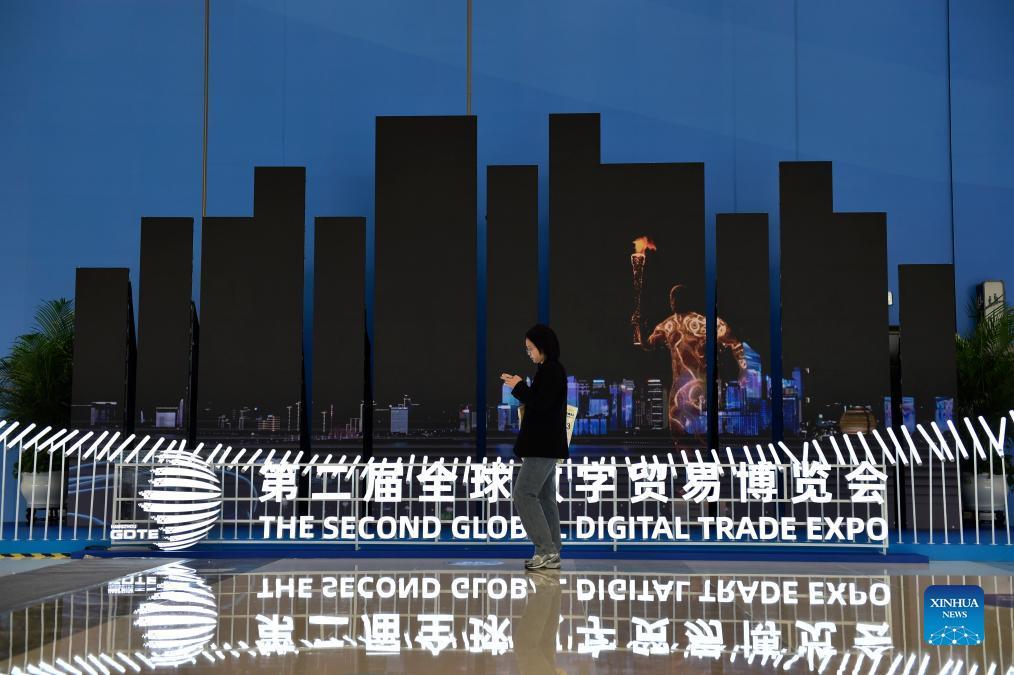 E-mail Xinhua, November 24, 2023A visitor is pictured at the second Global Digital Trade Expo in Hangzhou, east China's Zhejiang Province, Nov. 23, 2023. The second Global Digital Trade Expo kicked off in Hangzhou on Thursday morning, with an eye on global digital trade cooperation. The expo, themed "Digital Trade, Global Access," has attracted 68 international organizations and business associations, as well as over 800 enterprises. (Xinhua/Liu Lingyi)