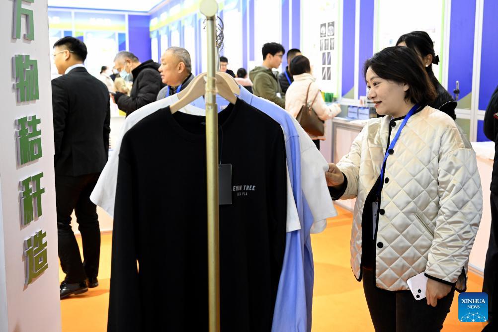 E-mail Xinhua, November 25, 2023Visitors look at clothes made from straw at the 3rd International New Materials Industry Conference in Bengbu, east China's Anhui Province, Nov. 24, 2023. The event kicked off in Anhui's Bengbu on Friday, featuring exhibitions, forums, seminars and trade fairs in the new materials industry. (Xinhua/Huang Bohan)