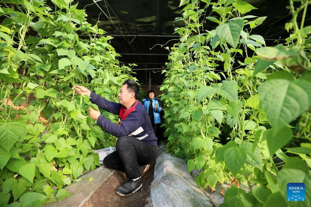 E-mail Xinhua, December 18, 2023Farmers pick vegetables at a greenhouse in Longyao County, north China's Hebei Province, Dec. 17, 2023. Countermeasures have been taken to prevent or alleviate impacts inflicted by extensive snowfall and other freezing conditions. (Xinhua/Mu Yu)