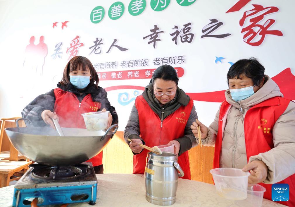 E-mail Xinhua, December 18, 2023Volunteers make dumplings for solitary and troubled elders at the Dushan Community in Linyi, east China's Shandong Province, Dec. 17, 2023. Countermeasures have been taken to prevent or alleviate impacts inflicted by extensive snowfall and other freezing conditions. (Photo by Wang Yanbing/Xinhua)