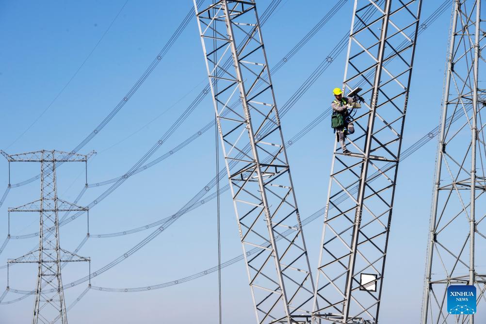 E-mail Xinhua, December 18, 2023A technician installs an on-line monitering device in Hefei, east China's Anhui Province, Dec. 17, 2023. Countermeasures have been taken to prevent or alleviate impacts inflicted by extensive snowfall and other freezing conditions. (Photo by Zheng Xianlie/Xinhua)