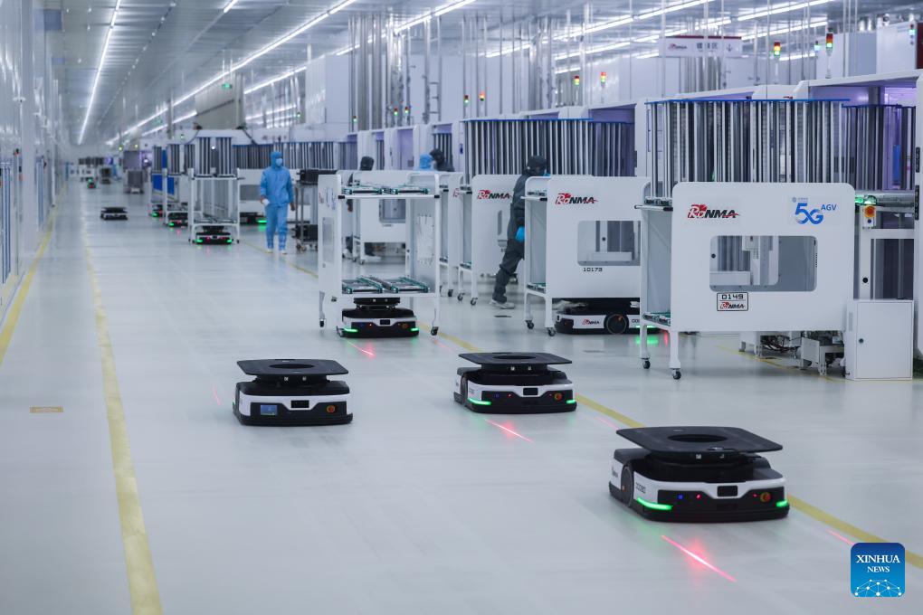 E-mail Xinhua, February 20, 2024Smart robots operate at a workshop of Ronma Solar in Jinhua City, east China's Zhejiang Province, Feb. 19, 2024. Factories across China have gradually resumed operations as the country's most celebrated holiday Spring Festival ends. (Xinhua/Xu Yu)