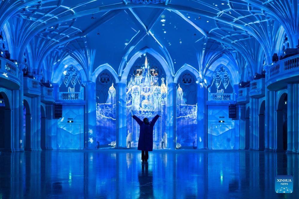 A visitor is seen at an indoor ice and snow theme park in Harbin, northeast China's Heilongjiang Province, July 6, 2024. (Xinhua/Xie Jianfei)