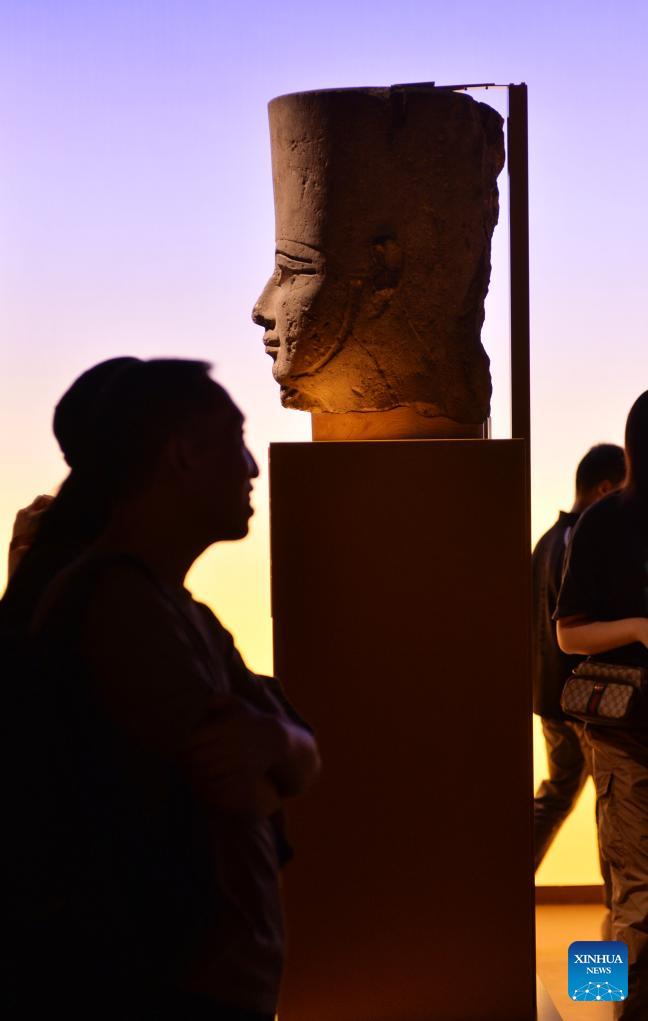 E-mail Xinhua, July 18, 2024Visitors view exhibits during a preview of the exhibition "On Top of the Pyramid: The Civilization of Ancient Egypt" at the Shanghai Museum in east China's Shanghai, July 17, 2024. The opening ceremony of the exhibition was held Wednesday at the Shanghai Museum on the People's Square of the city. The exhibition will be open to public on July 19, bringing Chinese visitors altogether 788 precious artifacts from different periods of ancient Egypt, most of which are being displayed in Asia for the first time. The exhibition will run until August 2025. (Xinhua/Lu Zhe)