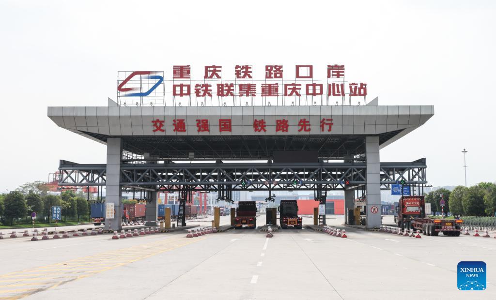 E-mail Xinhua, August 1, 2024This photo taken on July 30, 2024 shows the Chongqing Railway Port at the Chongqing International Logistics Hub Park in Shapingba District of Chongqing, southwest China. Chongqing International Logistics Hub Park, along with its 62 freight train routes, has risen to be a major hub of international freight trains in the country's western region. As many international logistics channels converge in Chongqing, the mountainous city is leveraging its connectivity, playing a strategic fulcrum role and transforming into a crucial highland for opening up. (Xinhua/Lyu Shuai)
