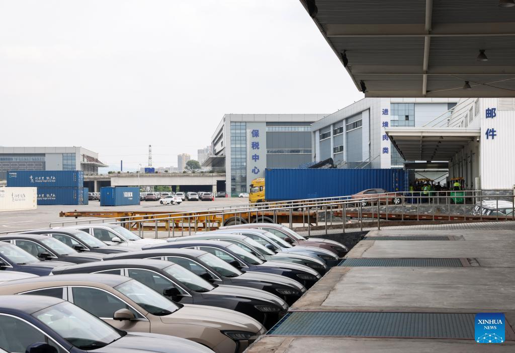 E-mail Xinhua, August 1, 2024This photo taken on July 30, 2024 shows the Chongqing Railway Port at the Chongqing International Logistics Hub Park in Shapingba District of Chongqing, southwest China. Chongqing International Logistics Hub Park, along with its 62 freight train routes, has risen to be a major hub of international freight trains in the country's western region. As many international logistics channels converge in Chongqing, the mountainous city is leveraging its connectivity, playing a strategic fulcrum role and transforming into a crucial highland for opening up. (Xinhua/Lyu Shuai)