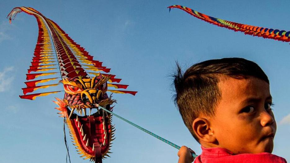 People fly dragon kites at Parangkusumo beach in Bantul district, Yogyakarta, Indonesia, on Dec. 17, 2023.