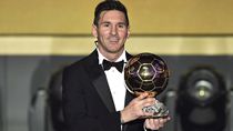 L-R: Thiago Silva, Luka Modric Marcelo, Paul Pogba, Sergio Ramos, Neymar, Dani Alves, Lionel Messi, Andres Iniesta and Cristiano Ronaldo pose after being selected in FIFA's FIFPro World XI for 2015. |