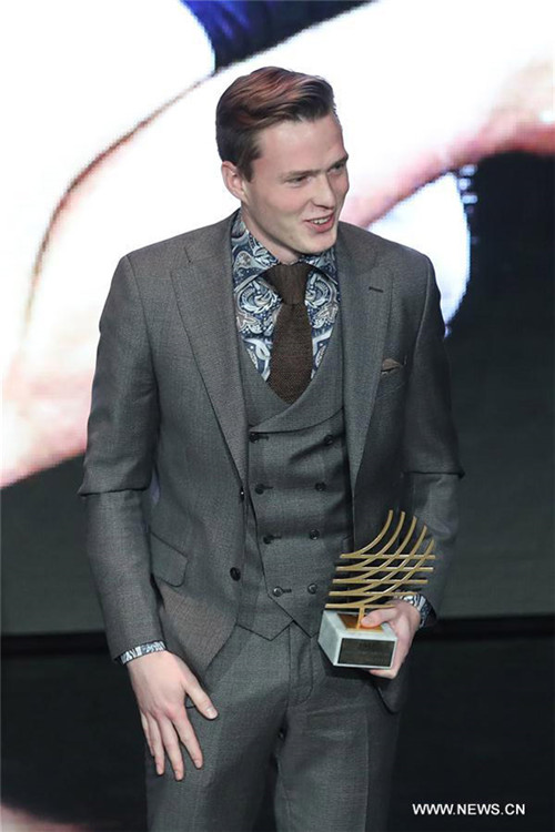 Norwegian track and field athlete Karsten Warholm poses for photos during the awarding ceremony of IAAF Athletics Awards 2017 in Larvotto, Monaco on Nov 24, 2017. Karsten Warholm won the IAAF Male Rising Star Award 2017. [Photo/Xinhua] |