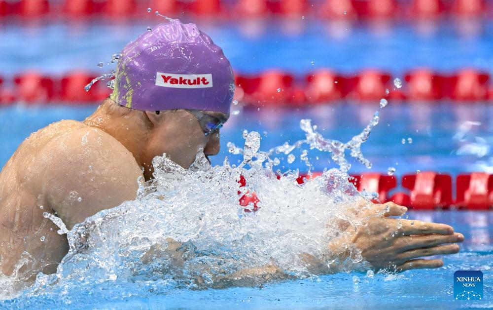 Qin Haiyang of China competes during the men's 200m breaststroke final at the World Aquatics Championships 2023 held in Fukuoka, Japan, July 28, 2023. (Xinhua/Xia Yifang)