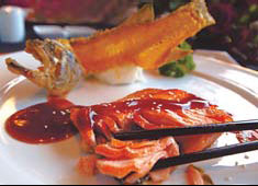 Flaky trout fillet served at Bai Yun, the Banyan Tree Lijiang, features fresh Lijiang trout. Photos by Pauline D Loh / For China Daily |