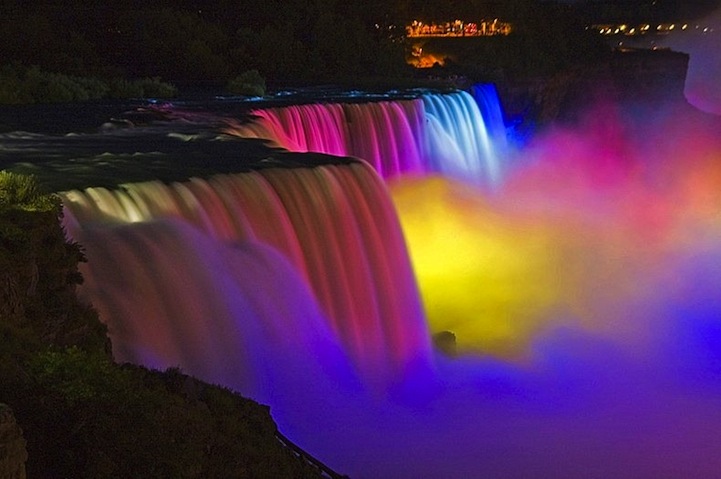 Colorful night illumination of Niagara Falls