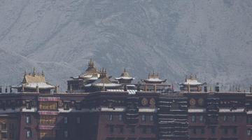 Photo taken on April 17, 2013 shows the snow-covered Potala Palace in Lhasa, capital of southwest China's Tibet Autonomous Region. Lhasa saw this year's biggest snowfall Wednesday morning. Snowfall in spring is widely regarded as an auspicious sign for a harvest year in China. [Xinhua/Purbu Zhaxi]