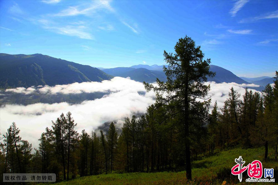 Kanas,in a valley in the Altai Mountains, is located near the very northern tip of Xinjiang Uygur Autonomous Region. "Kanas" is a Mongolian word meaning "lake in the canyon." The area is famous for its mysterious and wild landscape and especially its legendary lake. When September comes, Kanas enters a golden season. The plants covered by the golden sunshine, the lake in the near distance, the snow-capped mountains in the backdrop, the small wooden houses and the strolling herds of cattle and sheep, create a fairytale view. [China.org.cn]