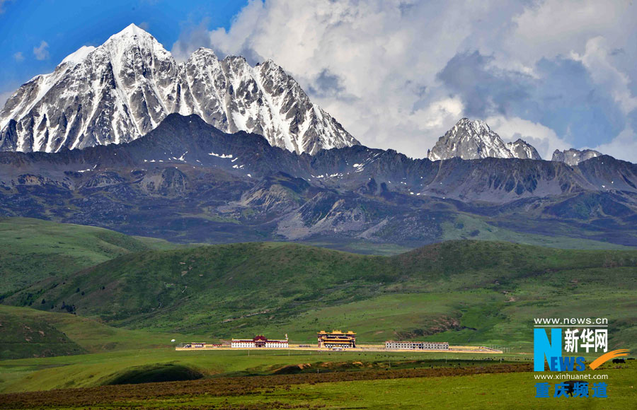 At the foot of snow-capped mountains, streamers are seen almost everywhere, telling people’s blessings and wishes. (Xinhua/ Ling Feng)