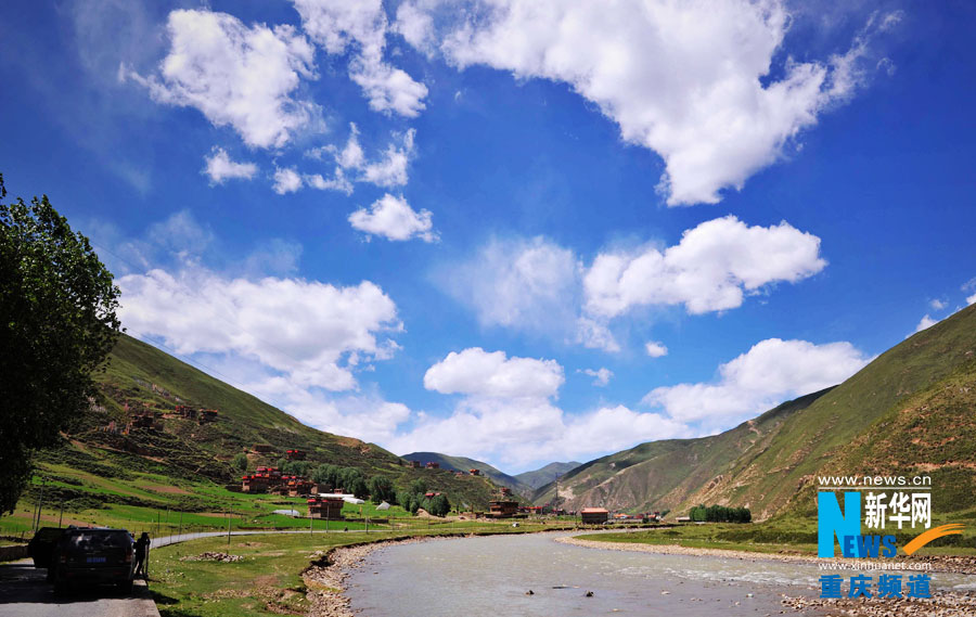 Nobody is willing to leave the boundless grassland, seeing mountains under the pure and lofty sky and white clouds at distance. (Xinhua/ Ling Feng)