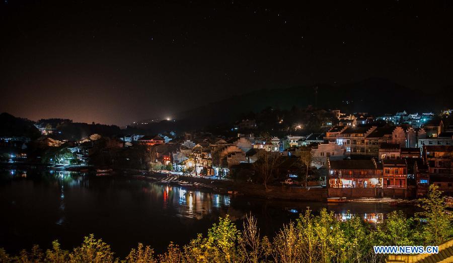 Photo taken on Nov. 24, 2013 shows the night scenery of Biancheng Town, central China's Hunan Province. The town became well known because of the novel "Biancheng", or "Border Town", by Chinese writer Shen Congwen. (Xinhua/Liu Chan)