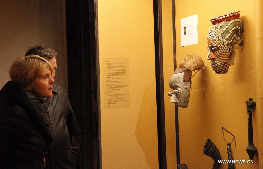 Visitors view exhibits at the Royal Museum for Central Africa in Brussels, capital of Belgium, on Nov. 29, 2013. The Royal Museum for Central Africa, which was built in the early 20th century, was closed to be modernized on Dec. 1 over the next 3 years. (Xinhua/Wang Xiaojun)