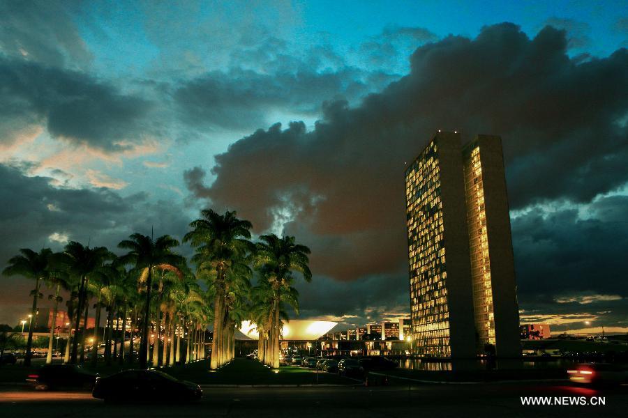 Photo taken on April 24, 2014 shows the cloud in Brasilia, capital of Brazil. Seated on the Goias plateau, the city enjoys a ever-changing scenery of cloud. (Xinhua/Xu Zijian)