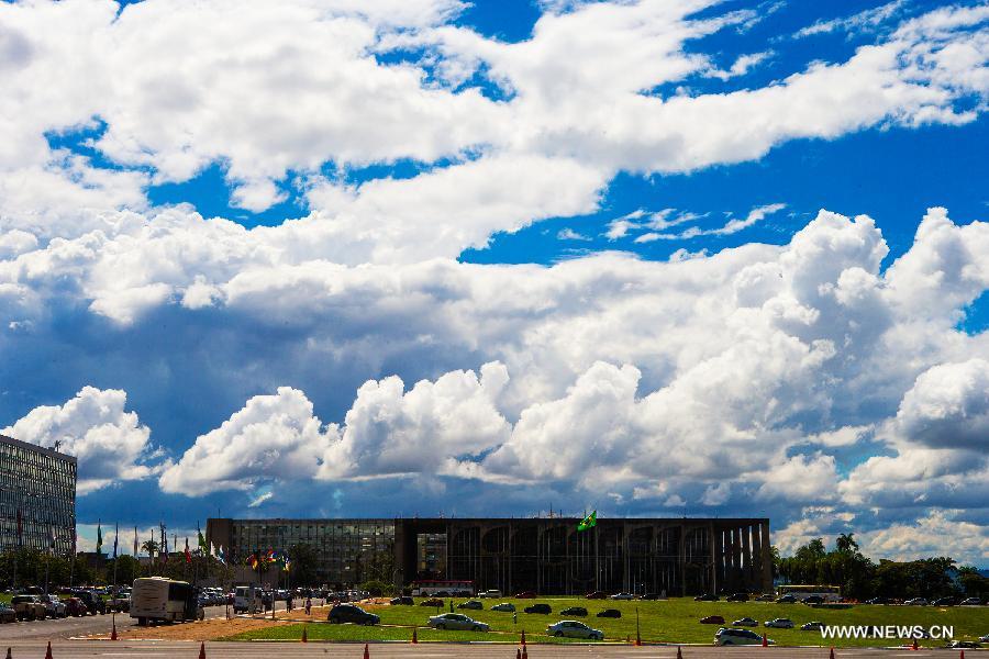Photo taken on April 25, 2014 shows the cloud in Brasilia, capital of Brazil. Seated on the Goias plateau, the city enjoys a ever-changing scenery of cloud. (Xinhua/Xu Zijian)